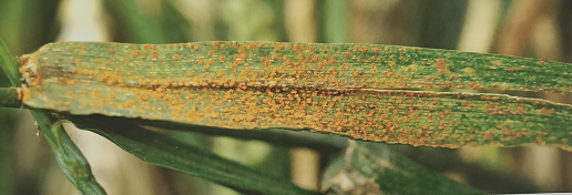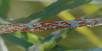 稈鏽病主要(yào)為(wèi)害莖稈和(hé)葉鞘,夏孢子(zǐ)堆最大(dà),隆起高(gāo),褐黃÷(huáng)色,不(bù)規則散生(shēng),常連接成大(dà)斑,成熟後表皮易破裂,且向外(wài)翻成唇狀₩,散出大(dà)量鏽褐色孢子(zǐ)粉末。後期産生(shēng)黑(hēi)色冬孢子(zǐ)堆,破裂散出黑(hēi)色冬孢子(zǐ)∑粉。