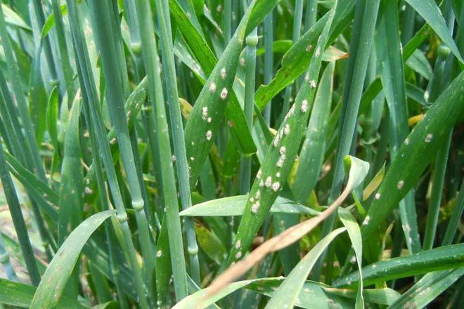 主要(yào)為(wèi)害葉片,嚴重時(shí)也(yě)可(kě)為(wèi)害葉鞘、莖稈和(hé)穂部。病部初産生(shēng)黃(huáng)色小(xiǎo)點,而後逐∑漸擴大(dà)為(wèi)圓形或橢圓形的(de)病斑,表面生(shēng)一(yī)層白(bái)粉狀黴層,黴層以後逐漸變為(wèi)灰白(≤bái)色,最後變為(wèi)淺褐色,其上(shàng)生(shēng)有(yǒu)許多(duō)黑(hēi)色小(xiǎo)點。病斑多(duō)時(shí)可(kě)愈合成"片,并導緻葉片發黃(huáng)枯死。莖和(hé)葉鞘受害後,植株易倒伏。