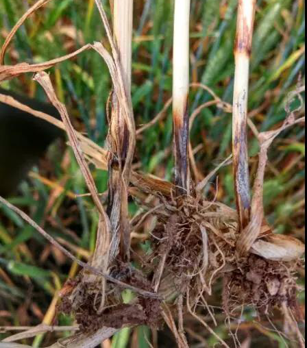 小(xiǎo)麥抽穗後田間(jiān)病株成簇或點片狀發生(shēng)早枯白(bái)穗,病根變黑(hēi),易于拔起。在莖部表面及葉鞘內(nèi)布滿緊密交織的(de)黑(hēi)褐↕色菌絲層,呈“黑(hēi)腳”狀,後顔色加深呈黑(hēi)膏藥狀,上(shàng)密布黑(hēi)褐色顆粒狀子(zǐ)囊殼。